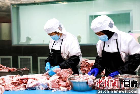 图为民勤县工作人员精深化加工肉羊。 邸海霞 摄