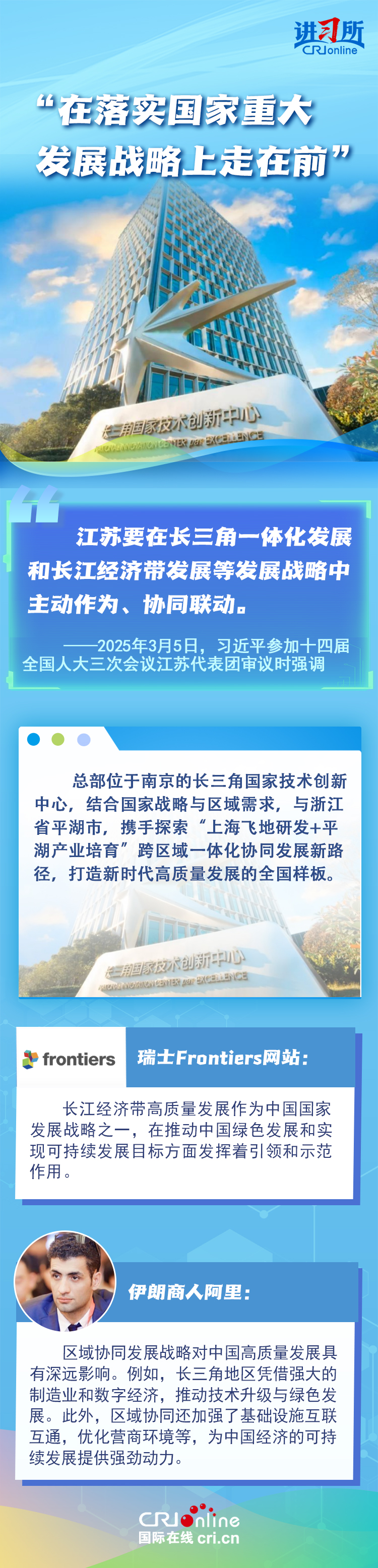 从紫金山实验室的6g突破到苏州工业园区的开放升级,从长三角协同创新到永联村的共富实践,江苏在中国式现代化新实践上已成为世界观察中国高质量发展的重要窗口。国际人士认为,中国因地制宜的创新发展之路有力推动了国家现代化进程与民生福祉提升。
